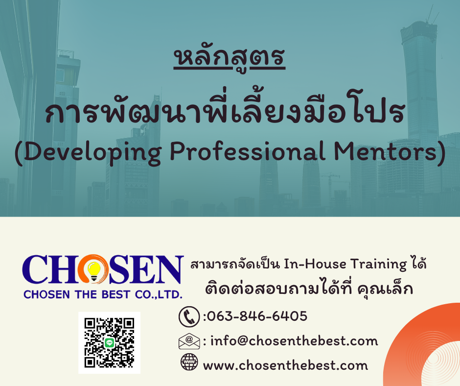 หลักสูตรนี้ได้ออกแบบและพัฒนาหลักสูตรนี้ขึ้นจากประสบการณ์วิทยากรที่คลุกคลีกับระบบพี่เลี่ยงมากกว่า 10 ปี ที่จะช่วยบุคลากรองค์กรของท่านเป็นสุดยอดพี่เลี้ยงได้อย่างชัดเจนเป็นรูปธรรม