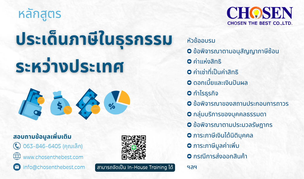 หลักสูตร “ประเด็นภาษีในธุรกรรมระหว่างประเทศ”