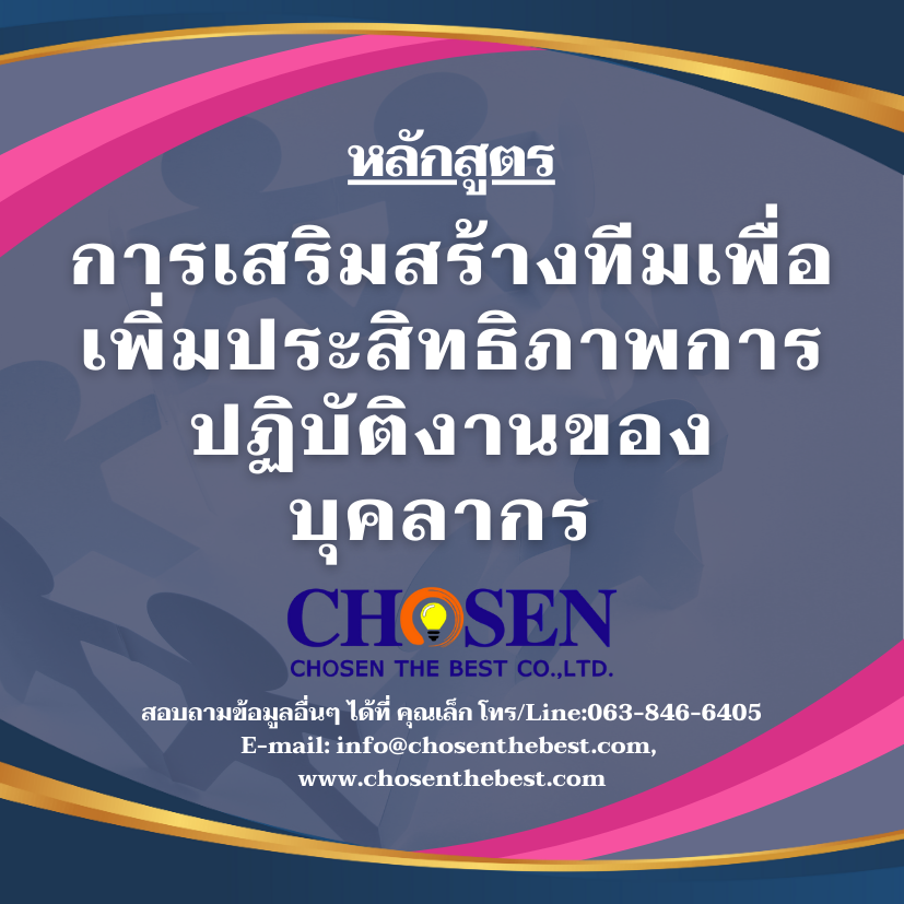 หลักสูตร การเสริมสร้างทีมเพื่อเพิ่มประสิทธิภาพการปฏิบัติงานของบุคลากร