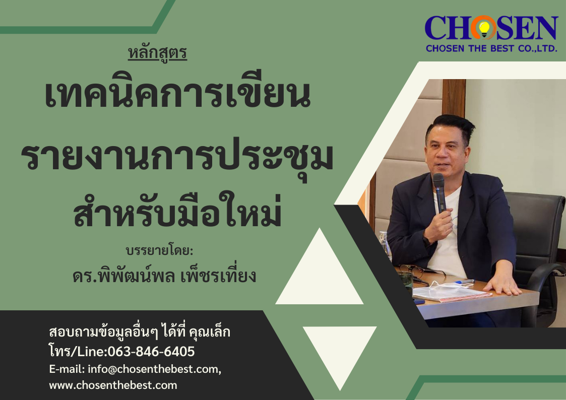 การจัดฝึกอบรมอบรมเพื่อส่งเสริมบุคลากรที่เกี่ยวข้องในการจัดการประชุม การจดบันทึกและเขียนรายงานการประชุมให้มีความรู้ ความเข้าใจ และทักษะการบันทึกและเขียนรายงานการประชุมด้วยความเข้าใจตรงตามหลักการพร้อมทั้งมีทัศนคติเชิงบวก ต่อหน้าที่ที่ได้รับมอบหมาย ทำให้การประชุมนั้นๆ บรรลุวัตถุประสงค์ที่ตั้งไว้ การฝึกอบรมจึงเน้นให้เห็นความสำคัญถึงเทคนิคการจดรายงานการประชุมและการเขียนรายงานการประชุมที่มีประสิทธิภาพ พร้อมทั้งฝึกฝนพัฒนาทักษะการเขียนรายงานการประชุมได้ตรงตามวัตถุประสงค์ขององค์กร
