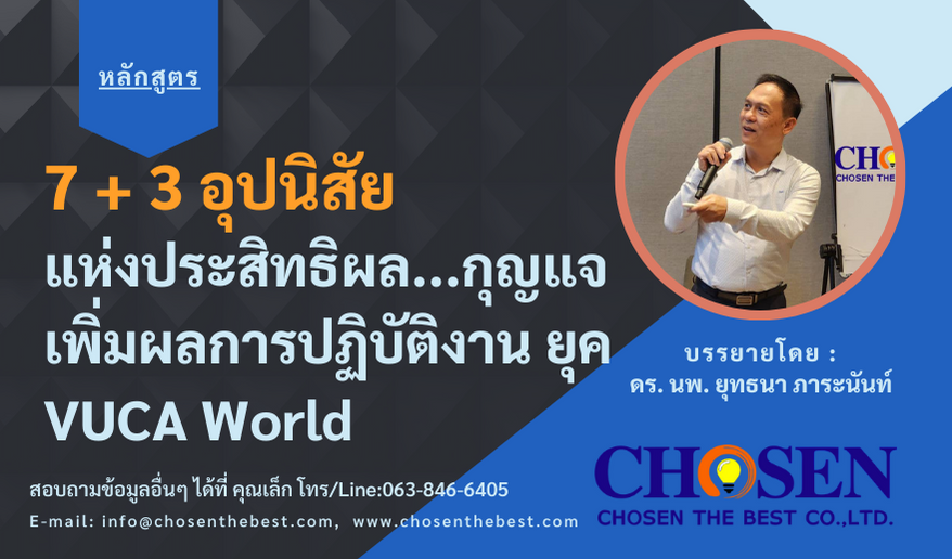 หลักสูตร 7 + 3 อุปนิสัยแห่งประสิทธิผล...กุญแจเพิ่มผลการปฏิบัติงาน ยุค VUCA World