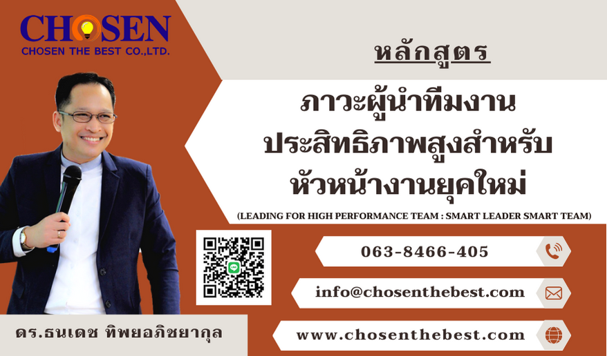 หลักสูตร ภาวะผู้นำทีมงานประสิทธิภาพสูงสำหรับหัวหน้างานยุคใหม่