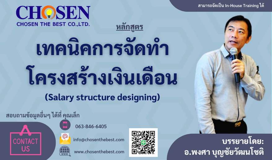 - เทคนิคและขั้นตอนในการจัดทำโครงสร้างค่าจ้างเงินเดือน (Salary Structure) ภาคปฏิบัติ