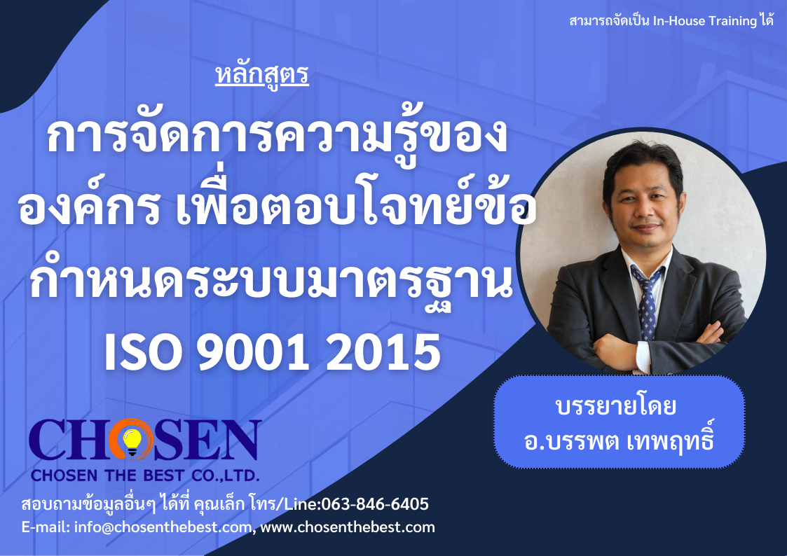 ปัจจุบันการสร้างและต่อยอดความรู้ในองค์กรถือได้ว่าเข้ามามีบทบาท ในการผลักดันให้องค์กรมีผลการดำเนินงานที่ดีและมีความสามารถในการดำเนินงานที่ทันต่อสภาวการณ์ภายนอกที่มีการเปลี่ยนแปลงอย่างรวดเร็ว จากความสำคัญนี้ มาตรฐาน ISO 9001:2015 ได้นำความรู้ขององค์กร (Organizational Knowledge) มาเป็นข้อกำหนดหนึ่ง ซึ่งกำหนดให้องค์กรมีการระบุ รวบรวมและใช้องค์ความรู้ที่เป็นประโยชน์ต่อการดำเนินงานขององค์กรในการส่งมอบผลิตภัณฑ์และบริการให้กับลูกค้าได้ตรงตามข้อกำหนดและองค์กรบรรลุผลลัพธ์ในการดำเนินงานตามที่ได้กำหนดเป้าหมายไว้