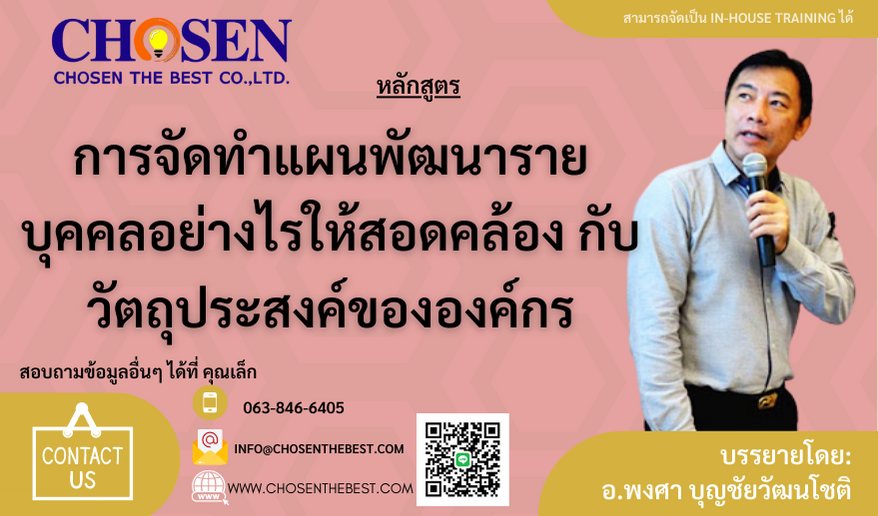 หลักสูตร ทำแผนพัฒนารายบุคคลอย่างไรให้สอดคล้อง กับวัตถุประสงค์ขององค์กร